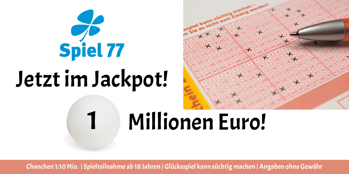 Die Teilnahme an der Zusatzlotterie "Spiel 77" ist über LOTTO 6aus49 immer mittwochs und samstags und über Eurojackpot immer samstags möglich.